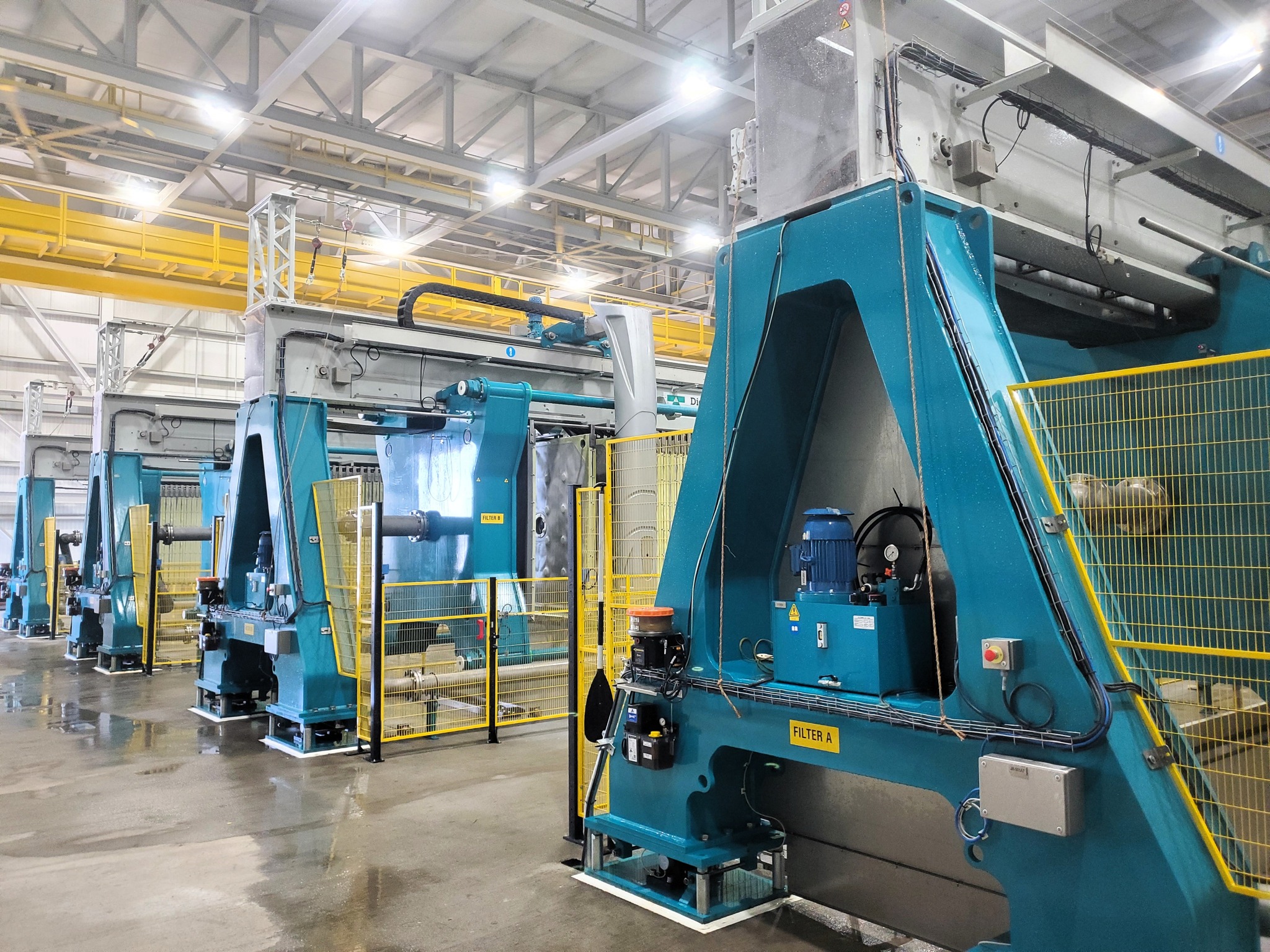 In diesem spezifischen Fall behandeln 4 x Filterpressen Mod. GHT2000P etwa 2400 Tonnen pro Tag und erreichen dabei eine Restfeuchte von etwa 18%.