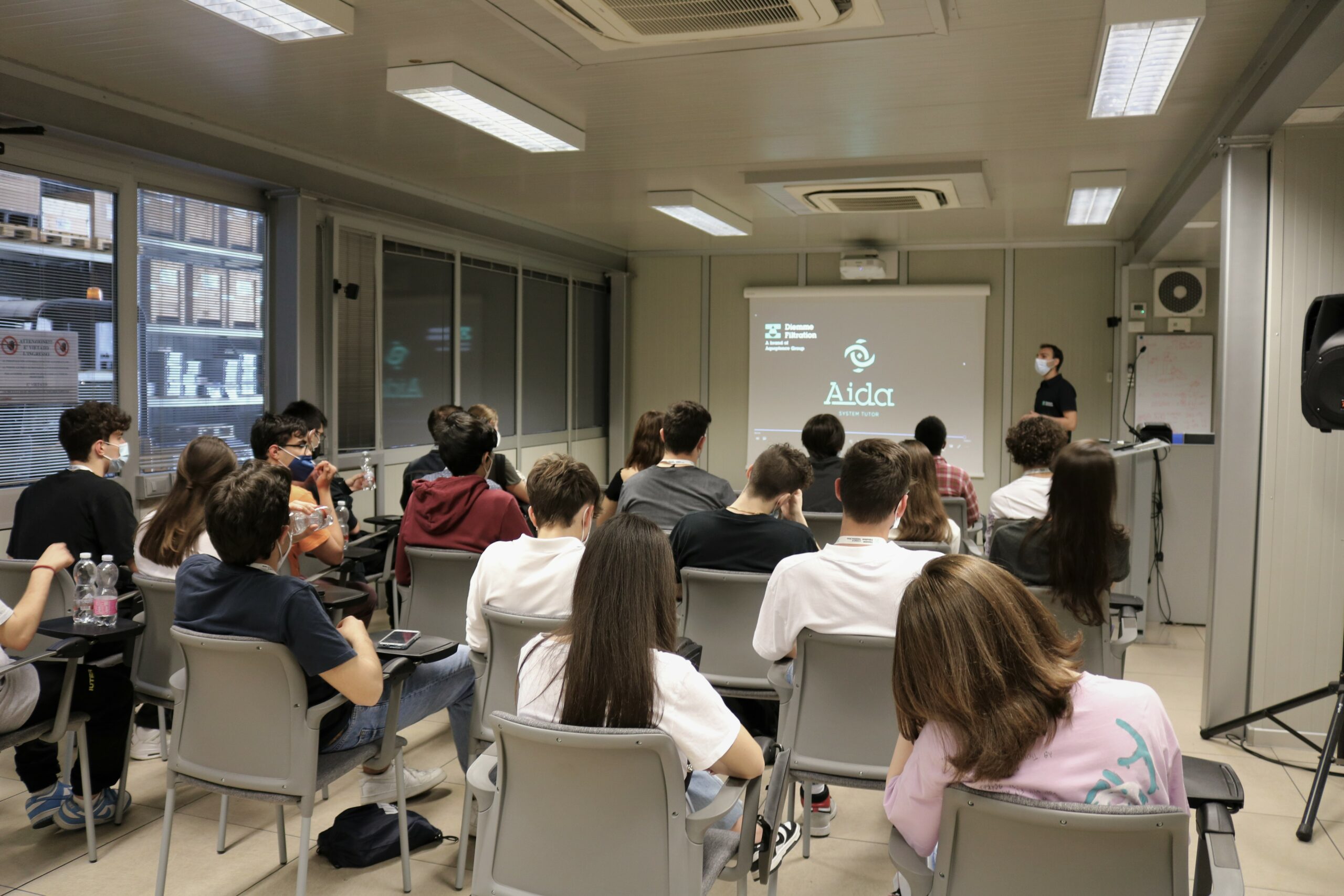A visita à empresa incluiu o departamento elétrico, onde os alunos viram de perto os componentes de um painel elétrico. Em seguida, visitaram o laboratório, onde lhes foi mostrada a instrumentação para caracterizar amostras de lodo e o equipamento de bancada usado para testes de filtragem. No departamento de testes, por outro lado, eles puderam ver um filtro prensa em ação, aprofundando-se em alguns aspectos de sua operação, especialmente do ponto de vista da programação. Por fim, a Diemme Filtration apresentou aos alunos do ensino médio o AIDA, seu novo serviço de suporte ao cliente 4.0 baseado em coleta de dados, análise, processamento e inteligência artificial.
